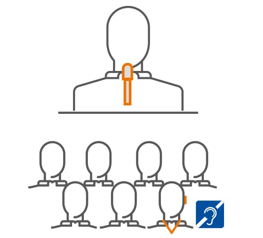 Med en portabel halsslinga kopplad till en mottagare kan deltagarna höra vad som presenteras av talaren i sin hörapparat. Kristallklar, ljudlös ljudöverföring garanterar högsta talförståelse.